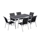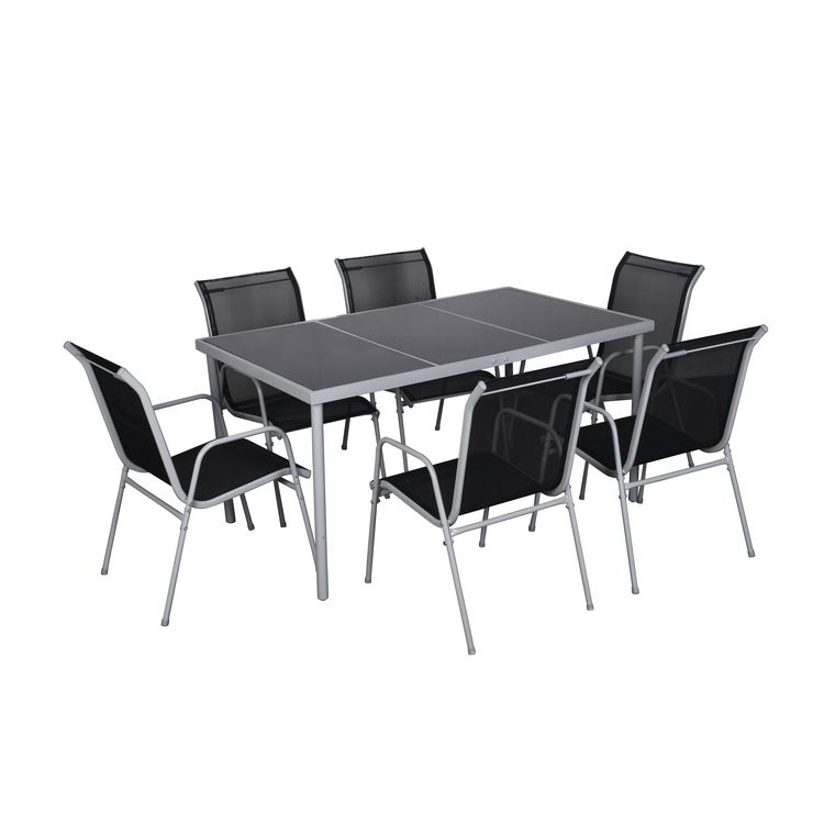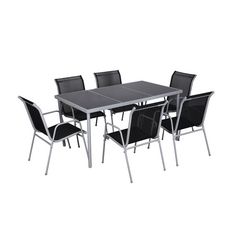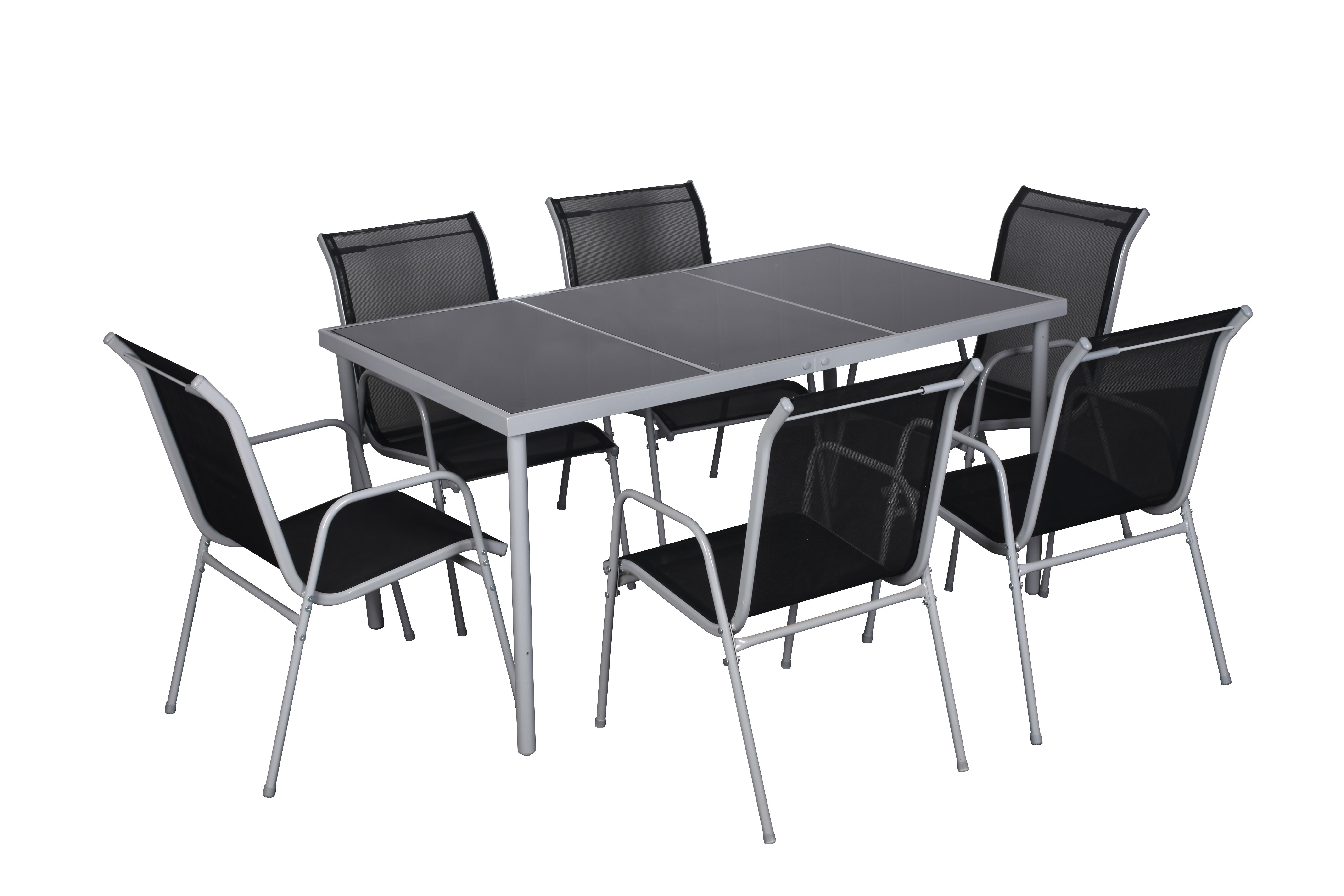 Table de jardin et 6 chaises en acier et toile PVC gris LUSIANA