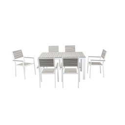 Table de jardin et 6 fauteuils en aluminium gris et blanc SIDERNO