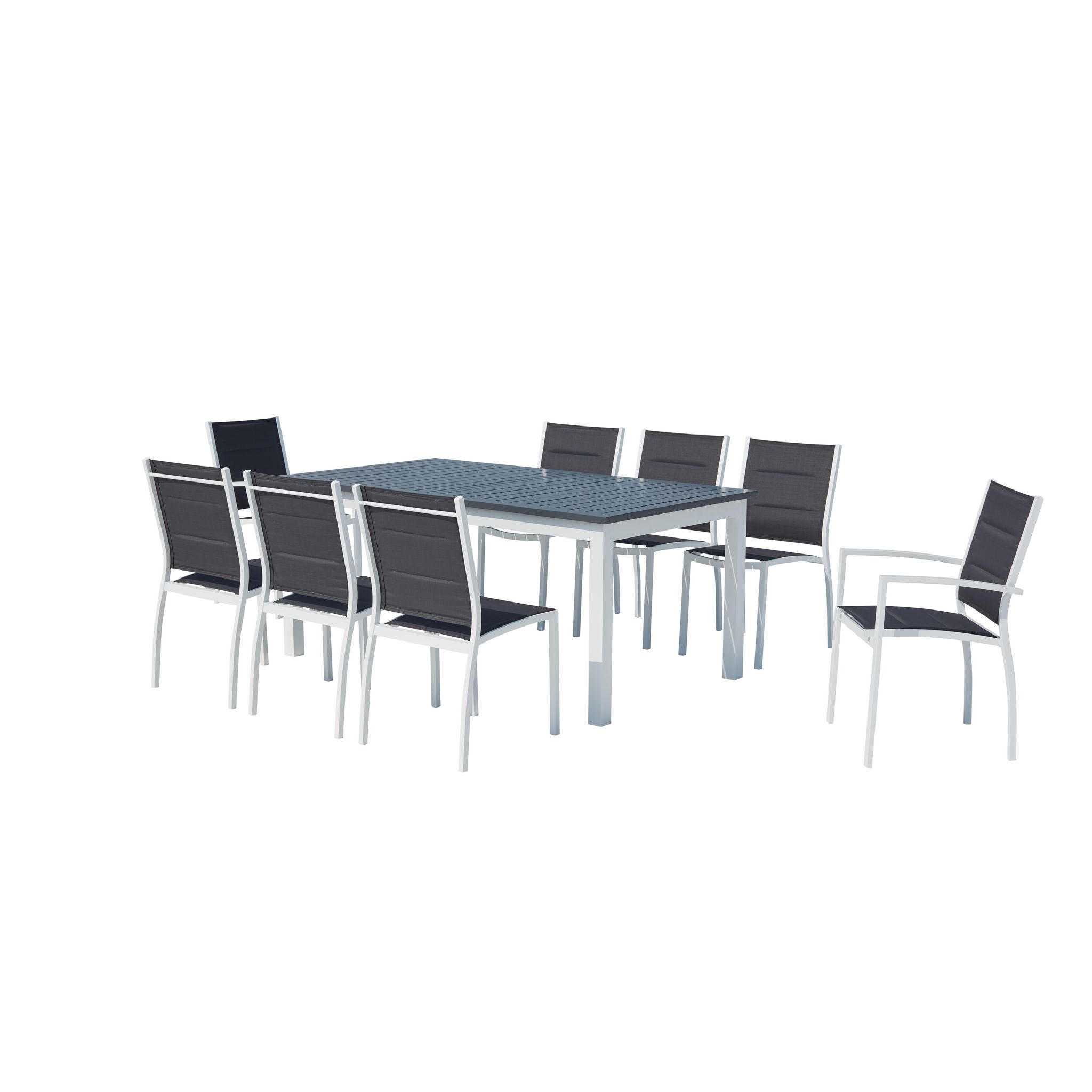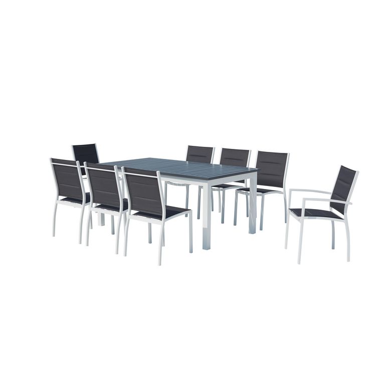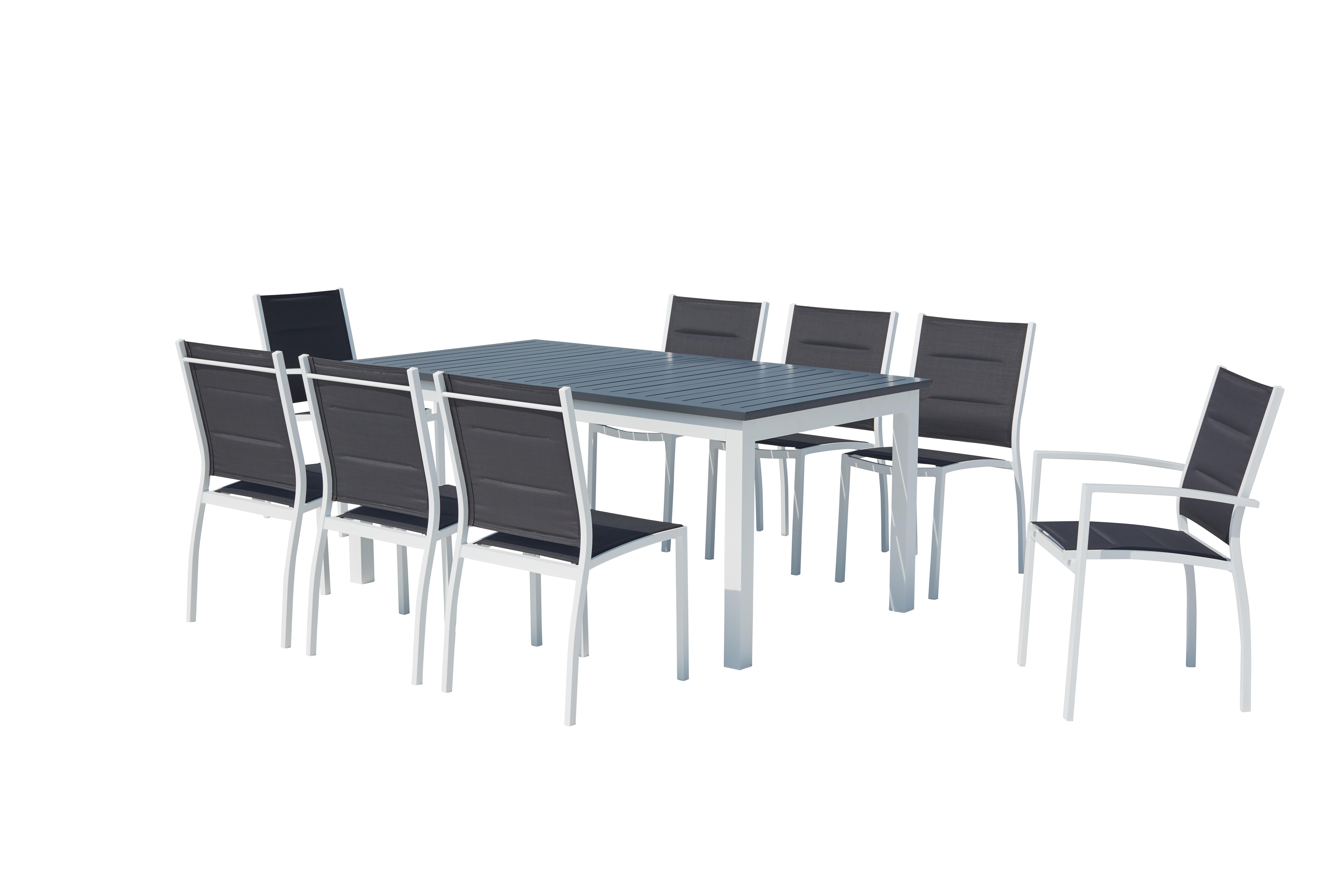 Table de jardin extensible et 8 chaises alu-toile PVC blanc AREZZO