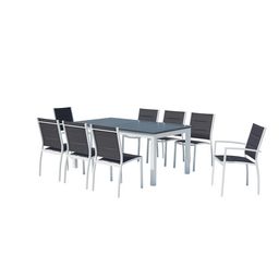 Profitez de moments en famille ou entre amis grâce cet elegant salon de jardin repas en aluminium Arezzo. Il vous permet d'accueillir confortablement jusqu'à 8 convives grâce à ses 6 chaises et 2 fauteuils en polyester.