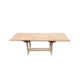 Pouvant accueillir jusqu'à 10 personnes, la table de jardin Kajang en teck brut est munie d'une rallonge papillon.Le teck est un bois solide qui resiste fortement aux intemperies.Table vendue seule.Caractéristiques techniques :Bois issu de forêtForte resistance aux intemperiesTeck brut, non traite (