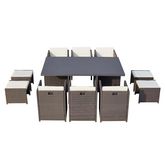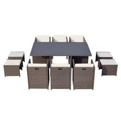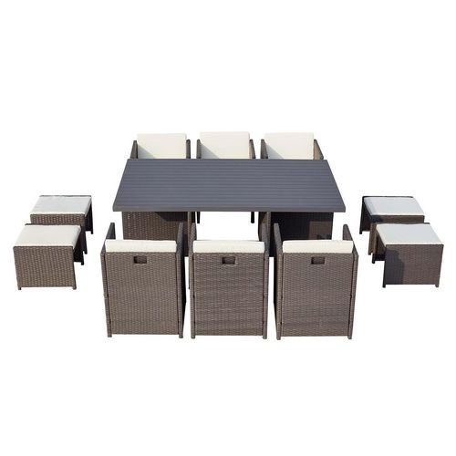 Table et chaise 10 places encastrables alu résine gris-blanc SUNSET