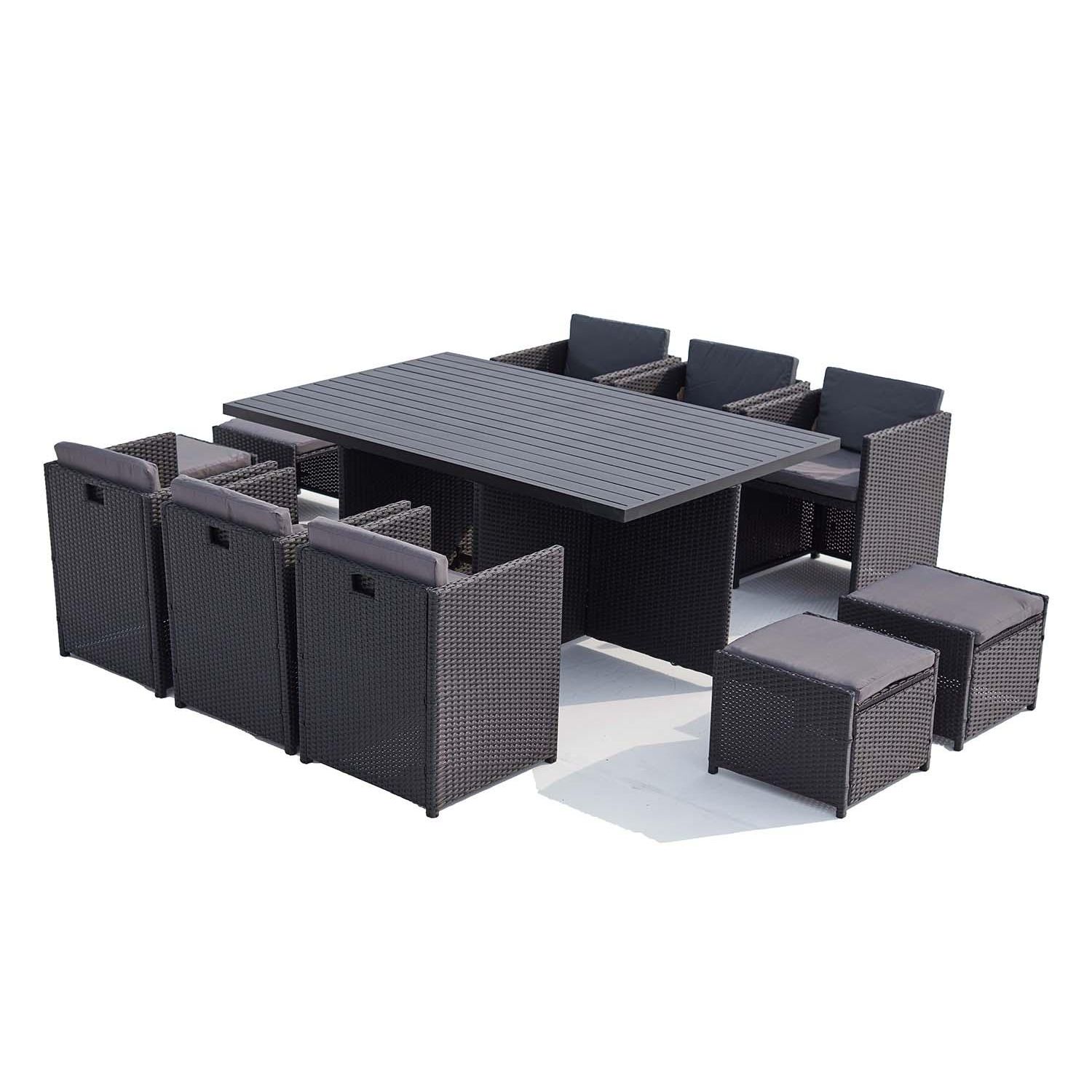 Table et chaise 10 places encastrables alu résine noir-gris SUNSET