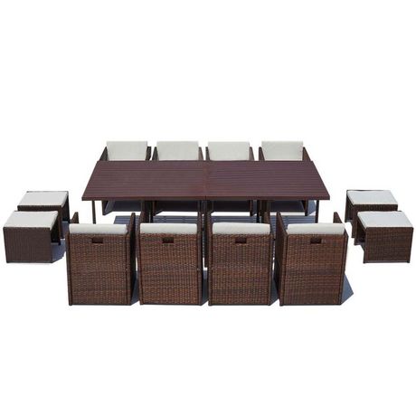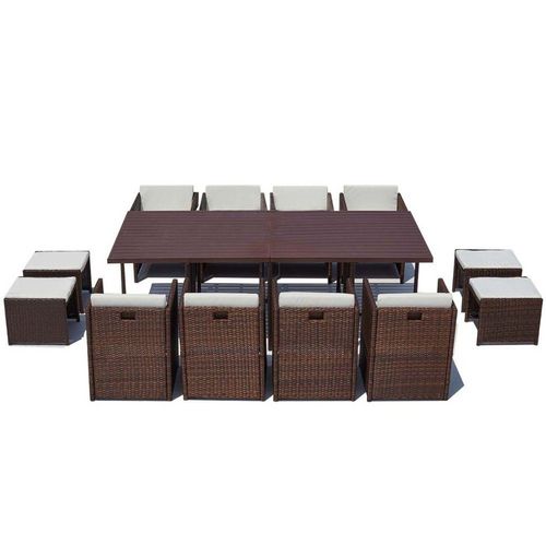 Table et chaise 12 places encastrables alu résine marron-blanc SUNSET