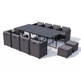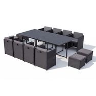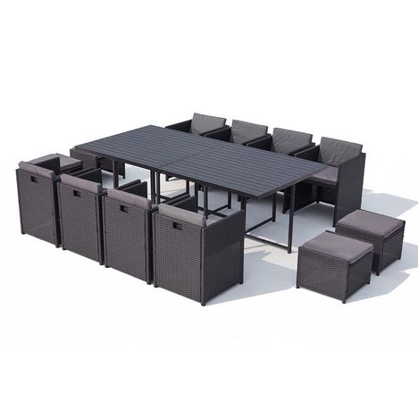 Table et chaise 12 places encastrables alu résine noir-gris SUNSET