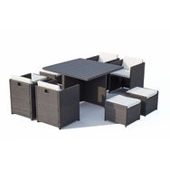 De plus, optimisez vos espaces avec sa fonctionnalite de rangement des plus pratiques : les poufs se rangent sous les fauteuils et ces derniers sous la table. Un vrai bloc fonctionnel !