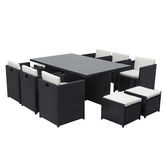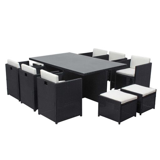 Table et chaises 10 places encastrables résine noir-blanc MIAMI