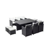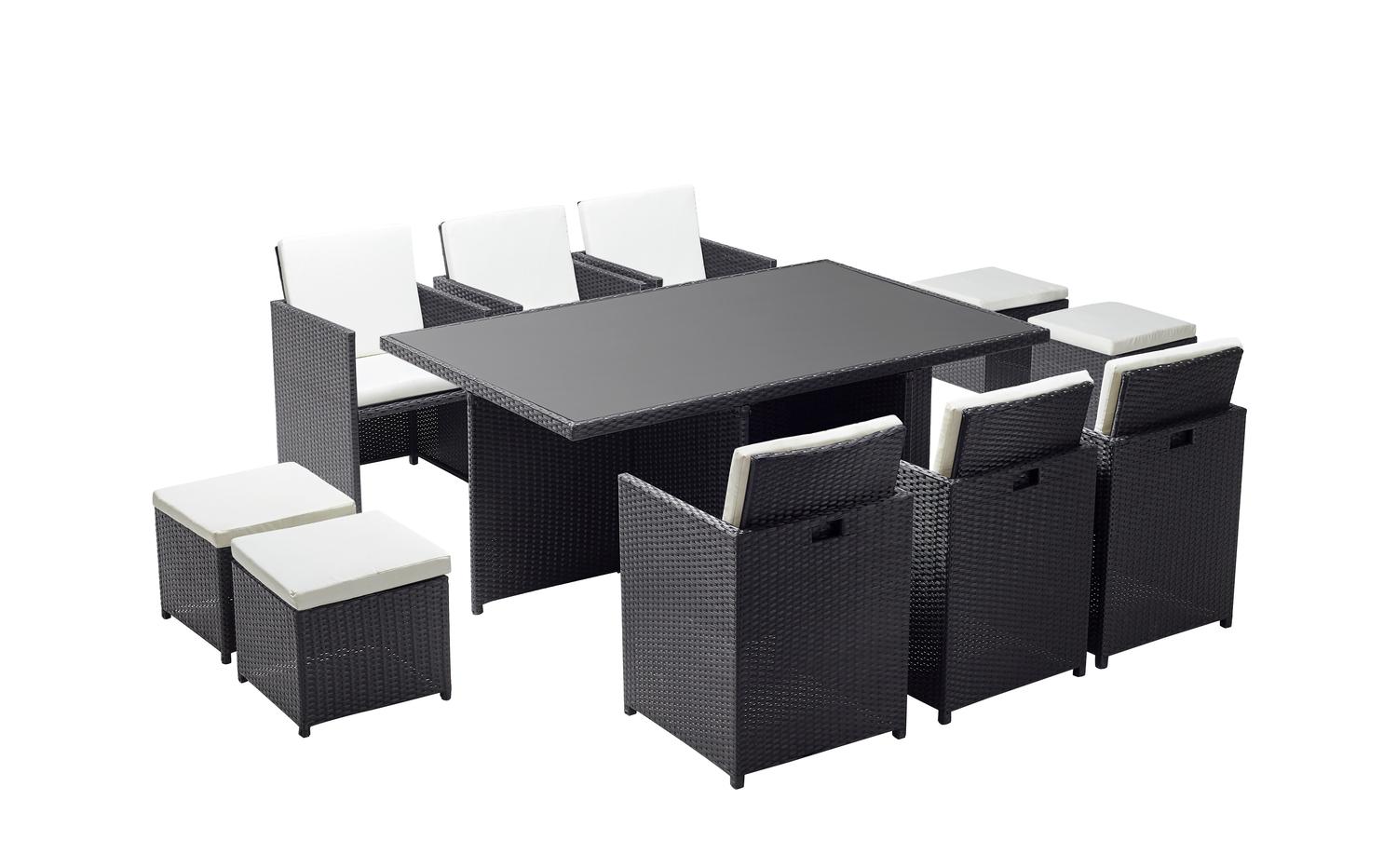 Table et chaises 10 places encastrables résine noir-blanc MONACO