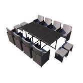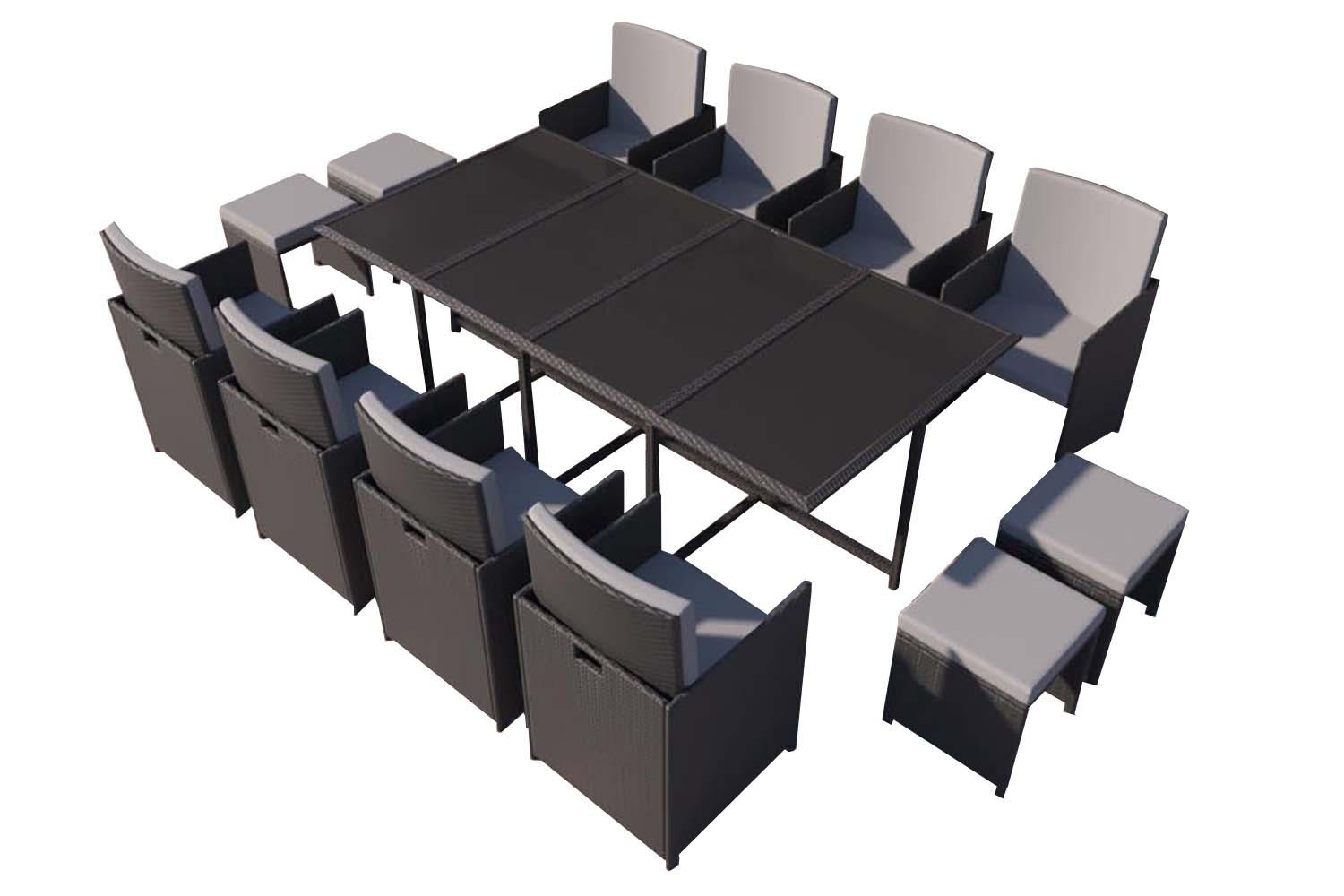 Table et chaises 12 places en résine tressée noir et gris FLORIDA
