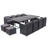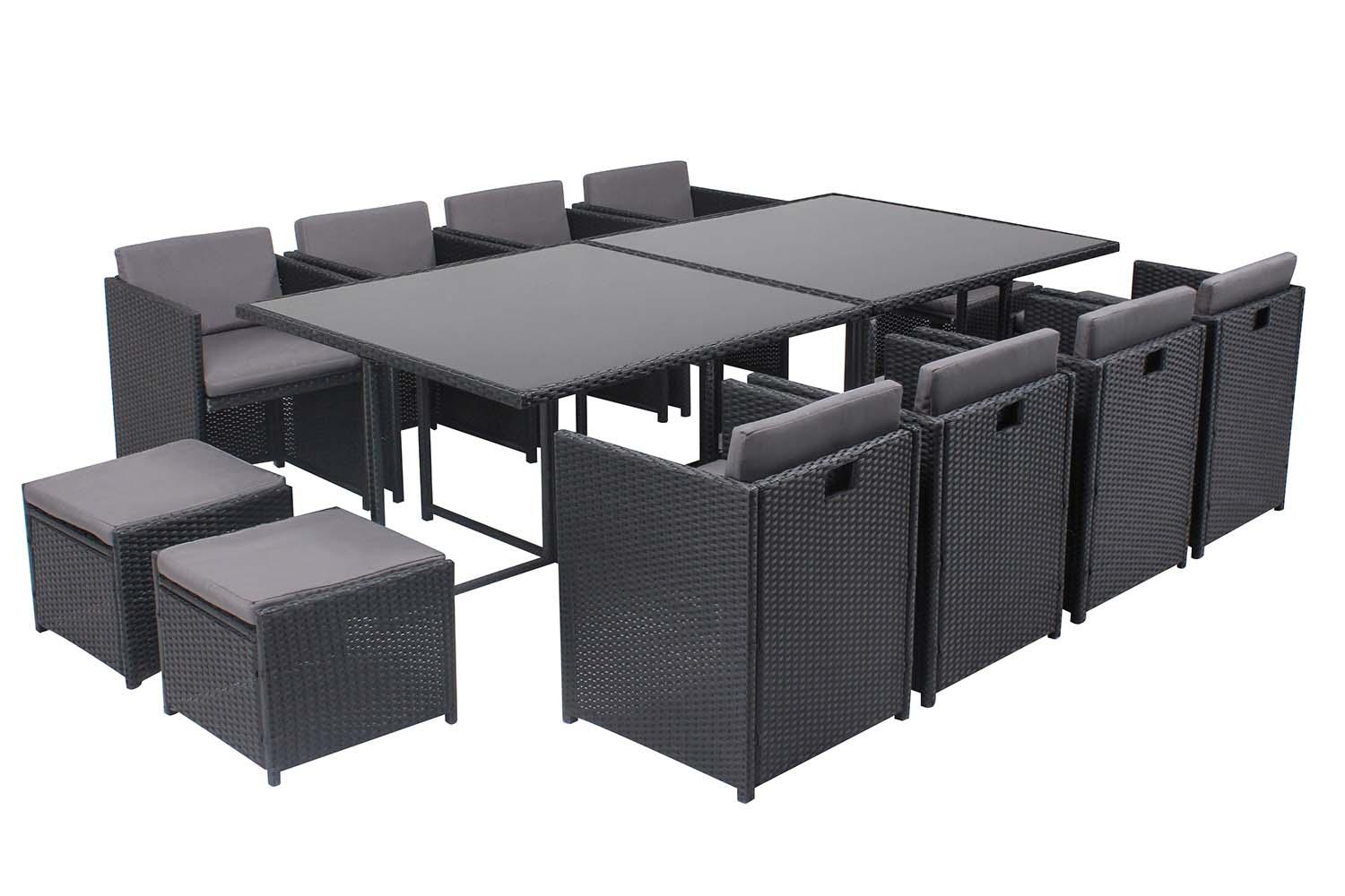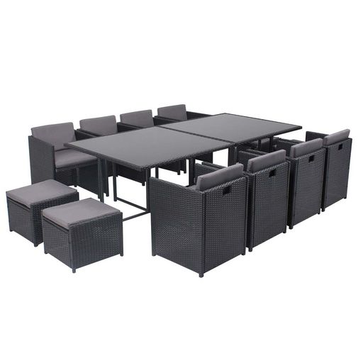 Table et chaises 12 places encastrables en résine noir-gris MIAMI