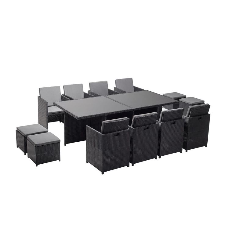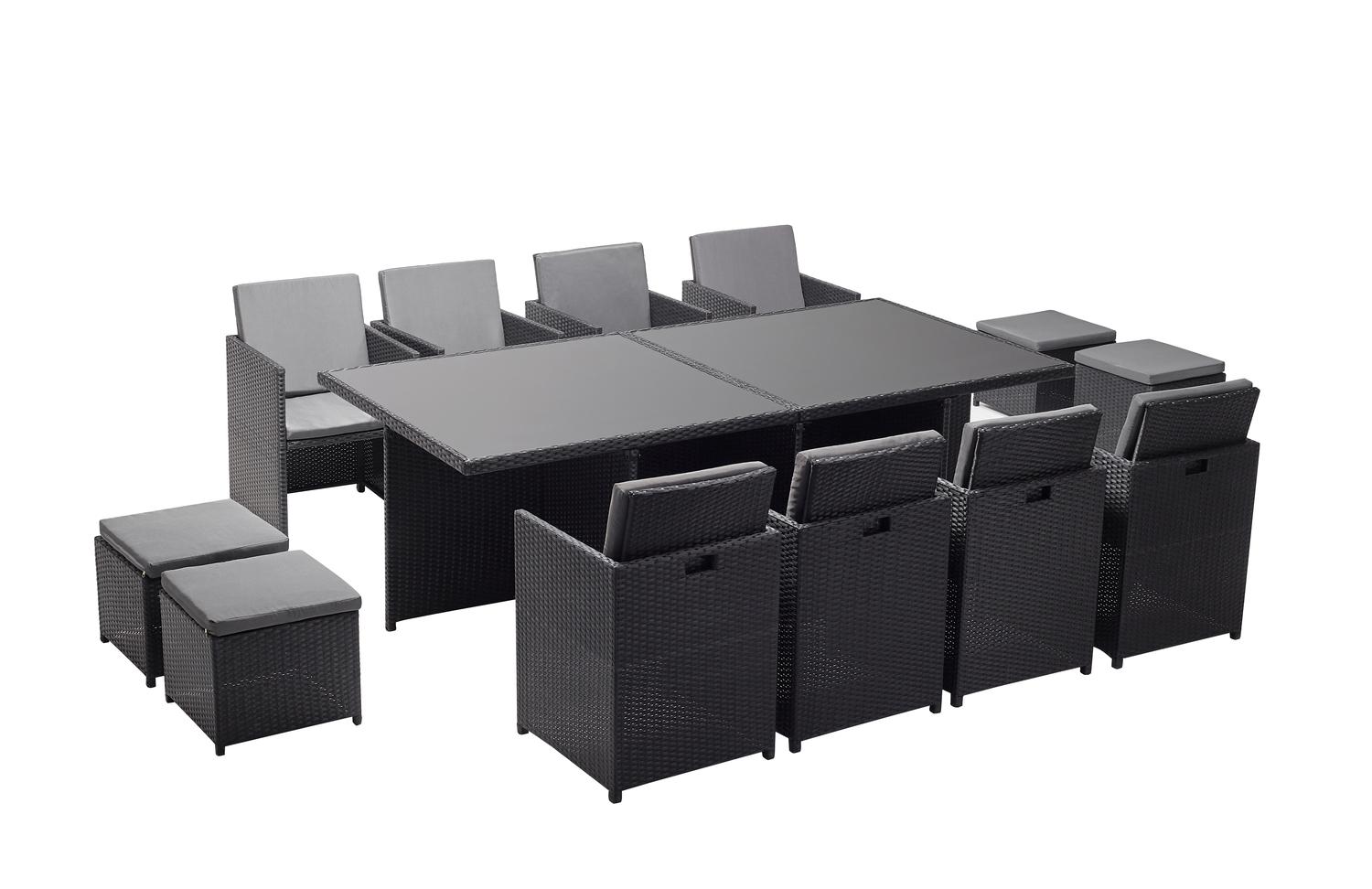 Table et chaises 12 places encastrables en résine noir-gris MONACO