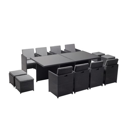 Salon de jardin 12 places resine tressee Noir/Gris