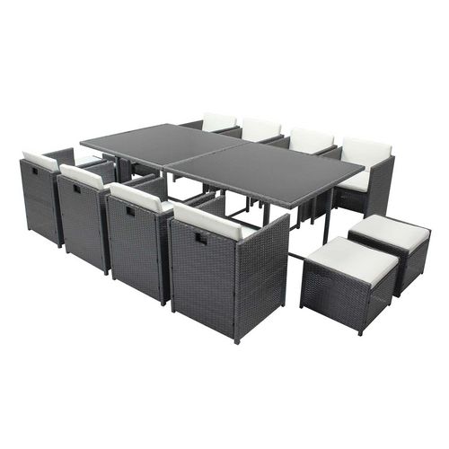 Table et chaises 12 places encastrables résine gris-blanc MIAMI