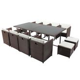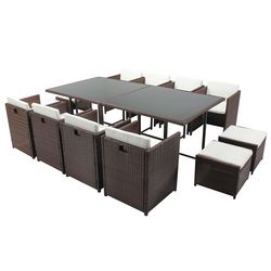 Table et chaises 12 places encastrables résine marron-blanc MIAMI