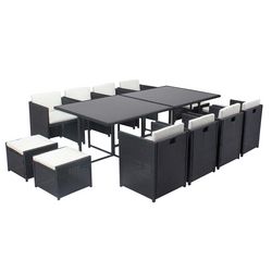 Table et chaises 12 places encastrables résine noir-blanc MIAMI