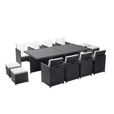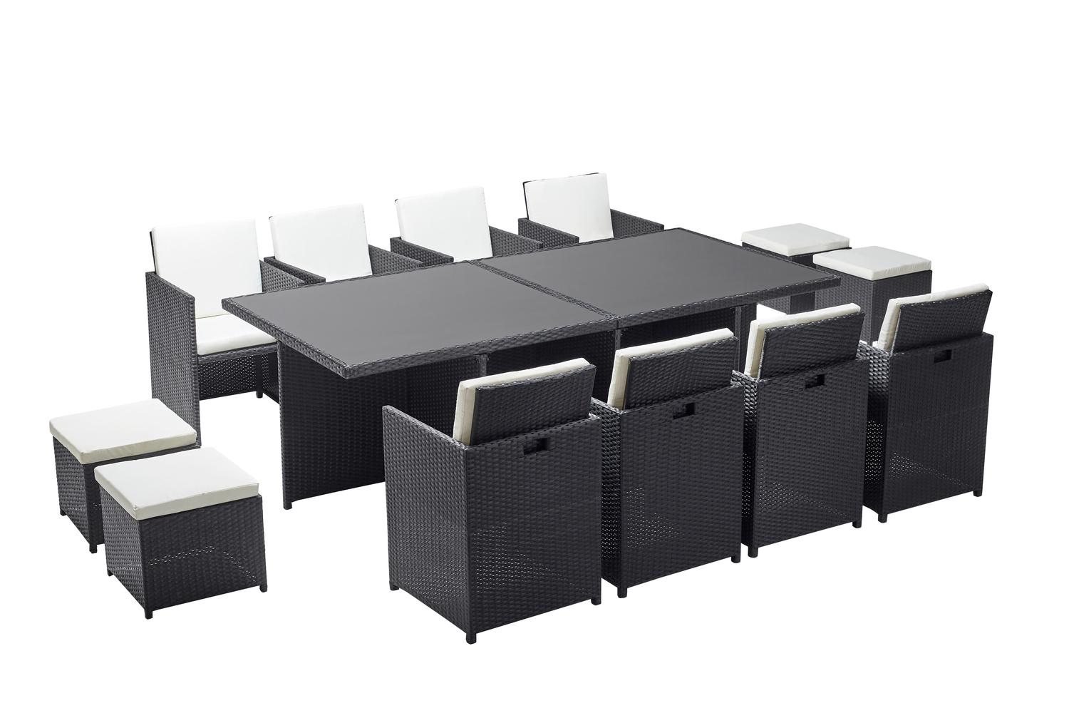 Table et chaises 12 places encastrables résine noir-blanc MONACO