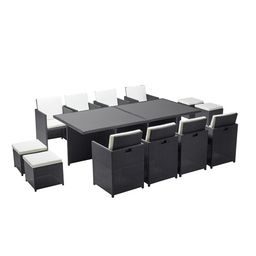 Salon de jardin 12 places resine tressee Noir/Blanc