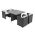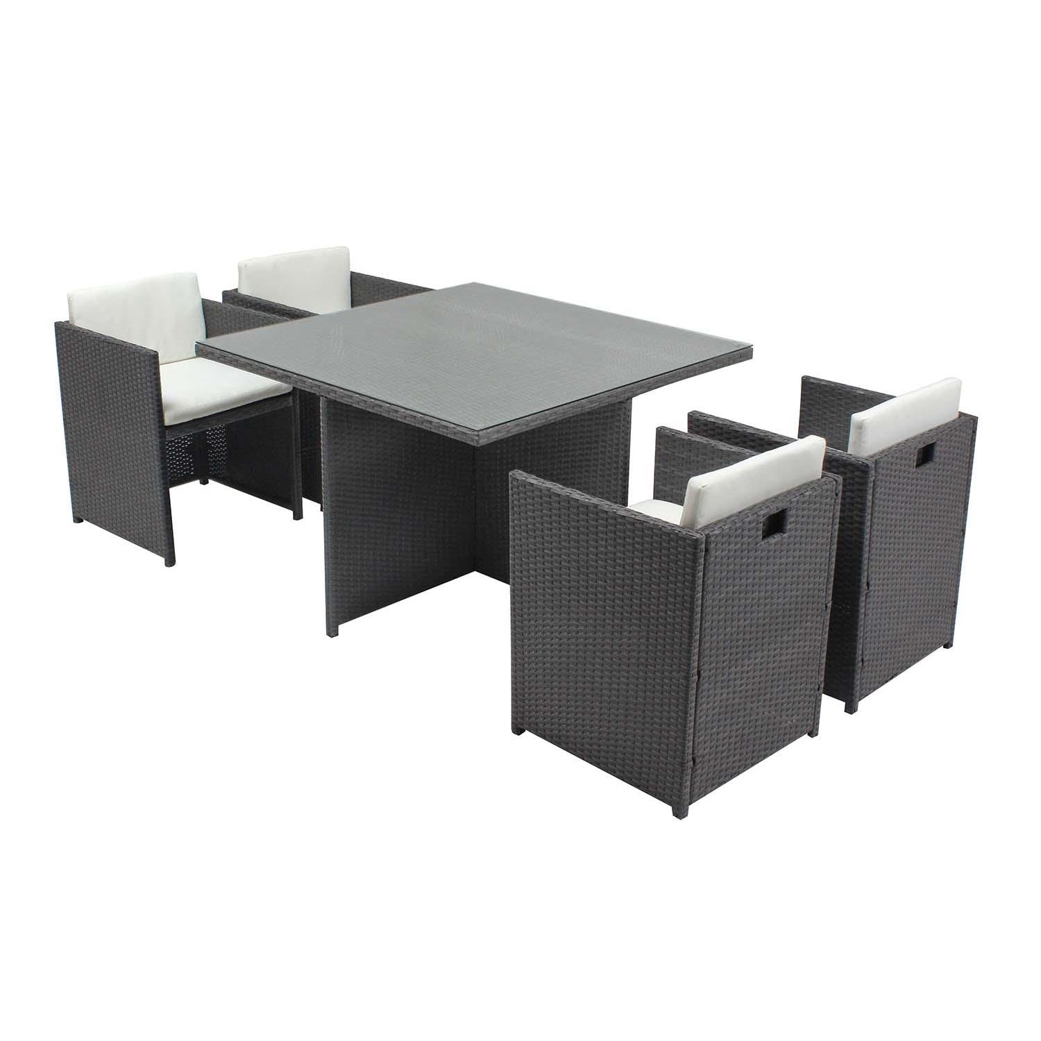 Ensemble de jardin en resine tressee : ressemblant à du rotin, cette nouvelle matière synthetique polyethylène n'en a que les qualites esthetiques sans les inconvenients : elle resiste aussi bien aux intemperies qu'aux UV, peut être utilisee aussi bien à l'interieur qu'à l'exterieur. La table est equipee d'un plateau en verre central amovible, facilitant son entretien. L'armature du mobilier est en acier, ce qui lui assure à la fois legèrete et solidite. L'assise des fauteuils est stable, confortable. Les fauteuils sont habilles de coussins en tissu blanc resistant à l'eau. Superbe Salon de Jardin luxe 4 personnes en resine tressee, encastrable. Table carree bi-matière (resine tressee et verre renforce 5 mm)+ 4 fauteuils habilles (coussins blancs) empilables et encastrables sous la table pour un gain de place optimal.