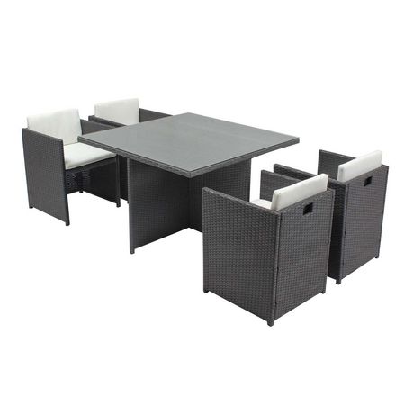 Table et chaises 4 places encastrables en résine gris-blanc MIAMI