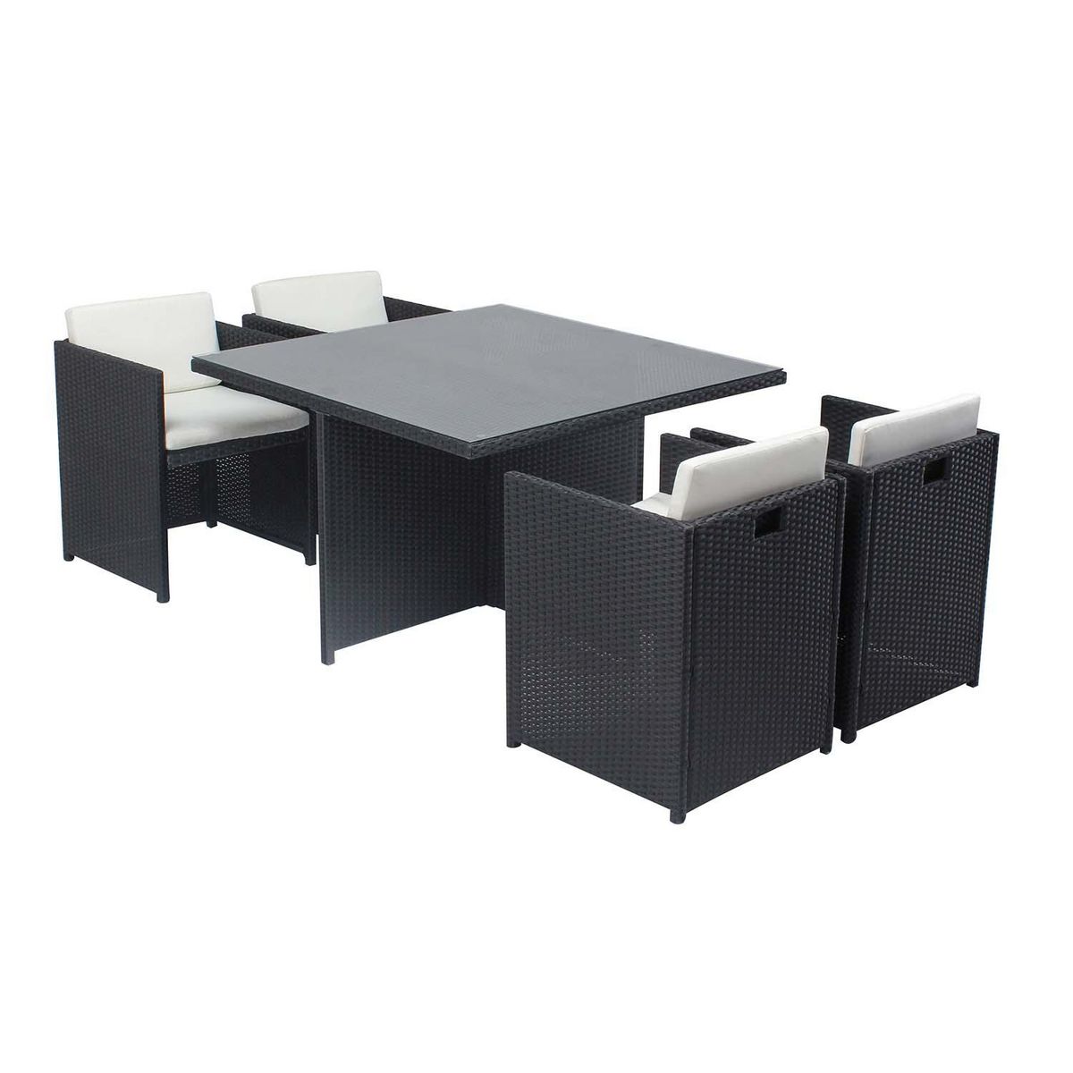 Table et chaises 4 places encastrables en résine noir-blanc MIAMI
