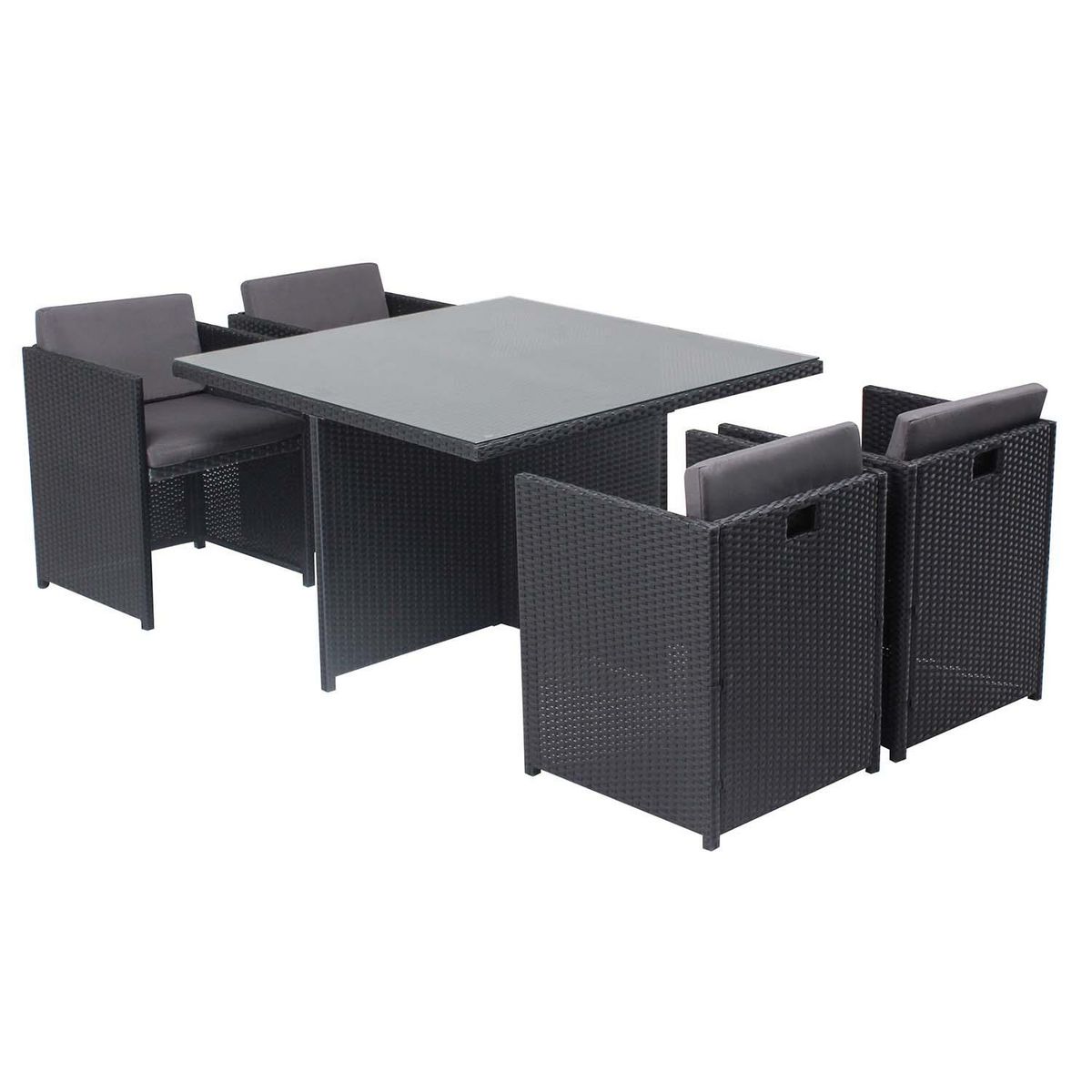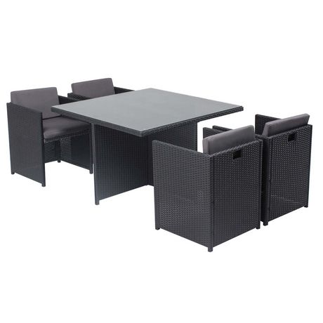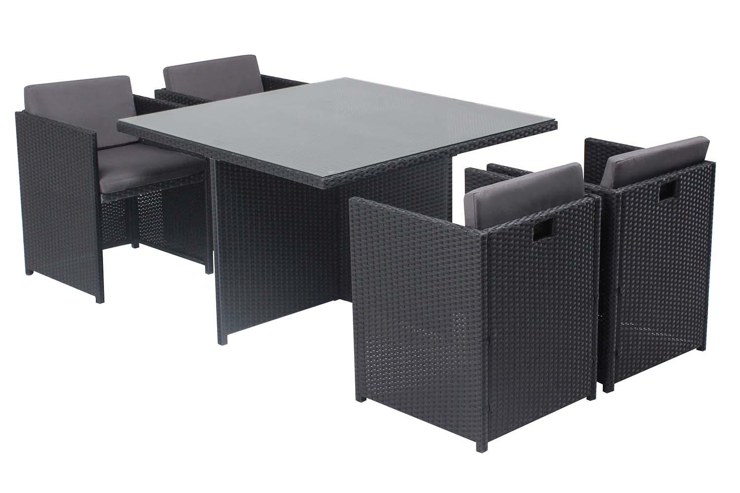 Table et chaises 4 places encastrables en résine noir-gris MIAMI