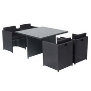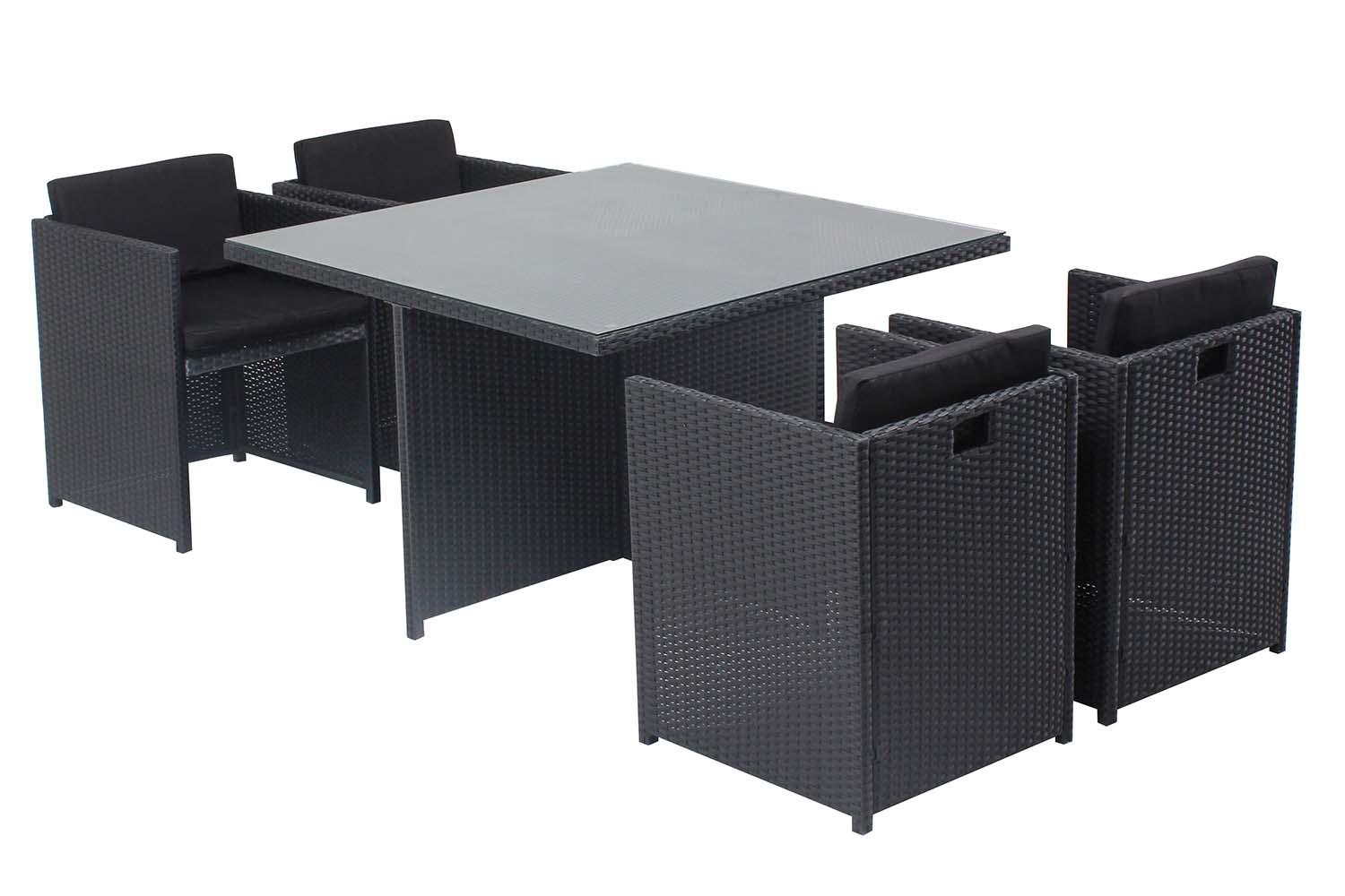 Table et chaises 4 places encastrables en résine noir-noir MIAMI