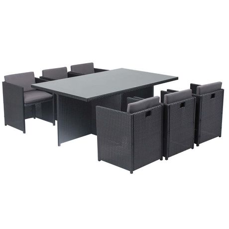 Table et chaises 6 places encastrables en résine noir-gris MIAMI