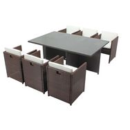 Table et chaises 6 places encastrables résine marron-blanc MIAMI