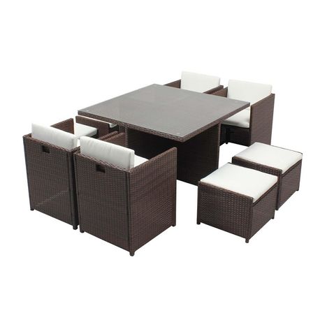 Table et chaises 8 places encastrables résine marron-blanc MIAMI