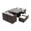 Table rectangulaire bi-matière (resine tressee et verre renforce 5 mm)+ 4 fauteuils habilles encastrables sous la table pour un gain de place optimal + 4 poufs habilles