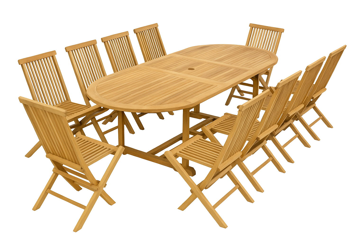Ce salon de jardin en teck massif allie élégance et robustesse pour accueillir jusqu'à 10 personnes.