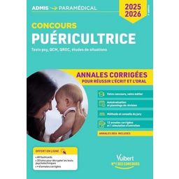 Réussissez le concours d'entrée en écoles de puéricultrice, grâce à ce livre d'entraînement intensif ! Tout ce qu'un candidat doit savoir pour réussir son concours : - Admissibilité : - 40 QCM et 10 QROC sur les connaissances du programme du DEI , - tests psychotechniques. - Admission : - épreuve orale portant sur l'étude d'une situation en rapport avec l'exercice professionnel infirmier : exposé de dix minutes maximum suivi d'une discussion avec le jury de dix minutes maximum. Ce livre propose tous les outils méthodologiques et un entraînement intensif : - une présentation du concours, de la formation et du métier et des témoignages de professionnelles pour savoir ce qui vous attend , - un test d'auto-évaluation pour personnaliser vos révisions , - un planning de révisions pour organiser votre préparation , - pour chaque épreuve, une présentation, un programme, une méthode avec les bons réflexes à adopter , - 10 sujets d'annales, dont celles de la session 2024, pour vous entraîner aux épreuves écrites dans les conditions du concours , - des corrigés détaillés faisant office de rappels de cours , - 2 annales corrigées et 1 simulation d'entretien pour être prêt pour l'oral , - les conseils du jury pour répondre aux attentes des examinateurs et déjouer les pièges. OFFERT en ligne : 20 tutos vidéos dédiés aux tests psychotechniques + 60 flashcards interactives + des sujets d'annales corrigés.