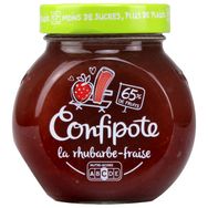 Confiture de Rhubarbe et de Fraises allégée en sucres (30 % de sucres en moins qu'une confiture classique).