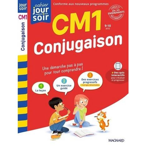 Une démarche progressive et efficace pour consolider ses bases en conjugaison Ce cahier d'entraînement donne toutes les clés à l'enfant pour réussir en conjugaison et connaître tous les temps du programme du CM1 : présent, imparfait, futur, passé composé. - Une démarche conçue comme un parcours pour permettre à l'enfant de progresser : - Toutes les règles : des leçons synthétiques pour retenir l'essentiel - Un exercice d'application pas à pas avec des aides et des étapes - Des exercices variés et progressifs avec des astuces - Une dictée finale pour utiliser les temps étudiés - Le + pour l'élève : - des quiz numériques interactifs, sur toutes les notions du programme, pour s'évaluer et progresser de manière ludique, accessibles via des QR codes - tous les tableaux de conjugaison - Le + pour les parents : un cahier central détachable avec tous les corrigés