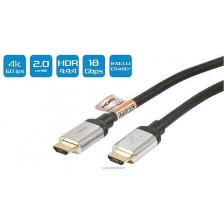 Avec sa certification HDMI Premium, ce câble de 2 mètres assure une compatibilité totale avec les normes HDMI 2.0. Il prend en charge les résolutions jusqu'à 2160p à 60 Hz, le HDR dynamique et les espaces colorimétriques étendus pour une expérience visuelle immersive.