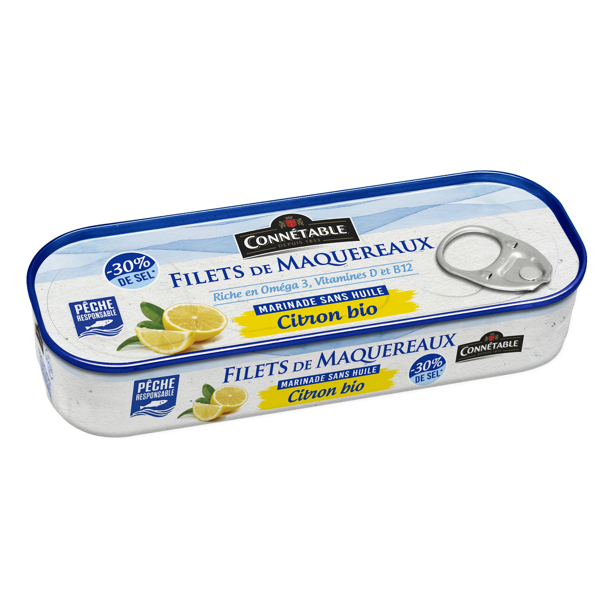 CONNETABLE Filets de maquereaux au citron bio -30% de sel 130g