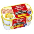 Foie de MORUE et son huile naturellement libérée 94%, citron (zeste et jus) 3,7%, sel, arôme naturel de citron.