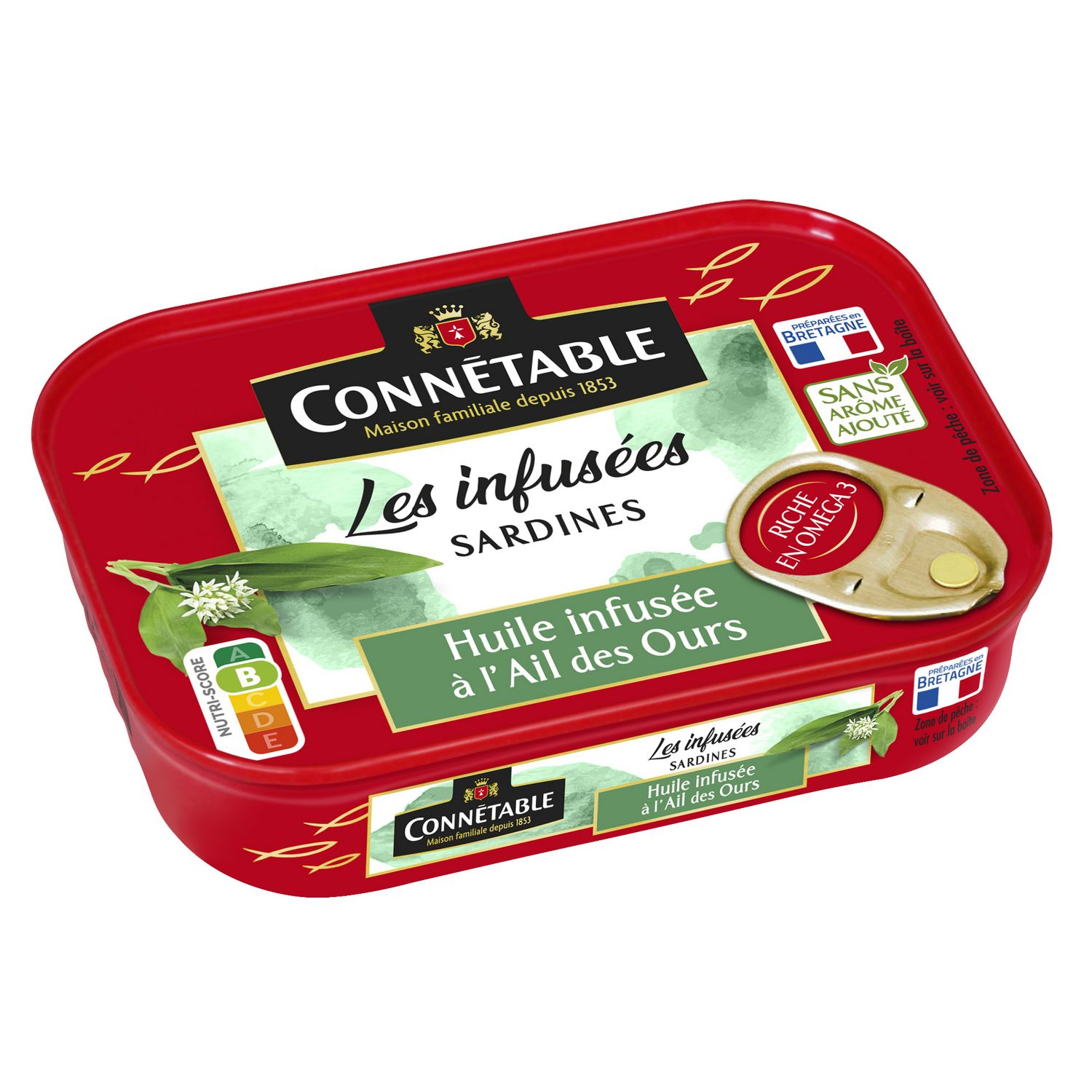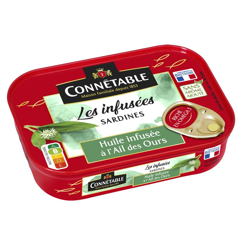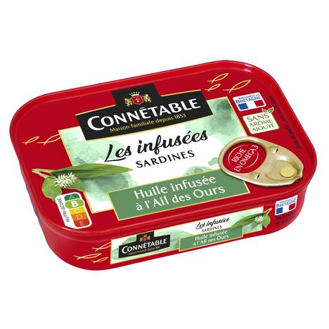 Notre passion chez Connétable : sublimer la sardine pour le plaisir des gourmets depuis plus de 170 ans à Douarnenez en Bretagne. Les huiles de notre gamme Les Infusées sont issues de véritables infusions, sans arôme ajouté. Avec le temps, les sardines s'imprègnent naturellement des délicieuses saveurs des huiles pour le plus grand plaisir des gourmets. L'ail des ours est un ail sauvage aux notes fraiches et florales.