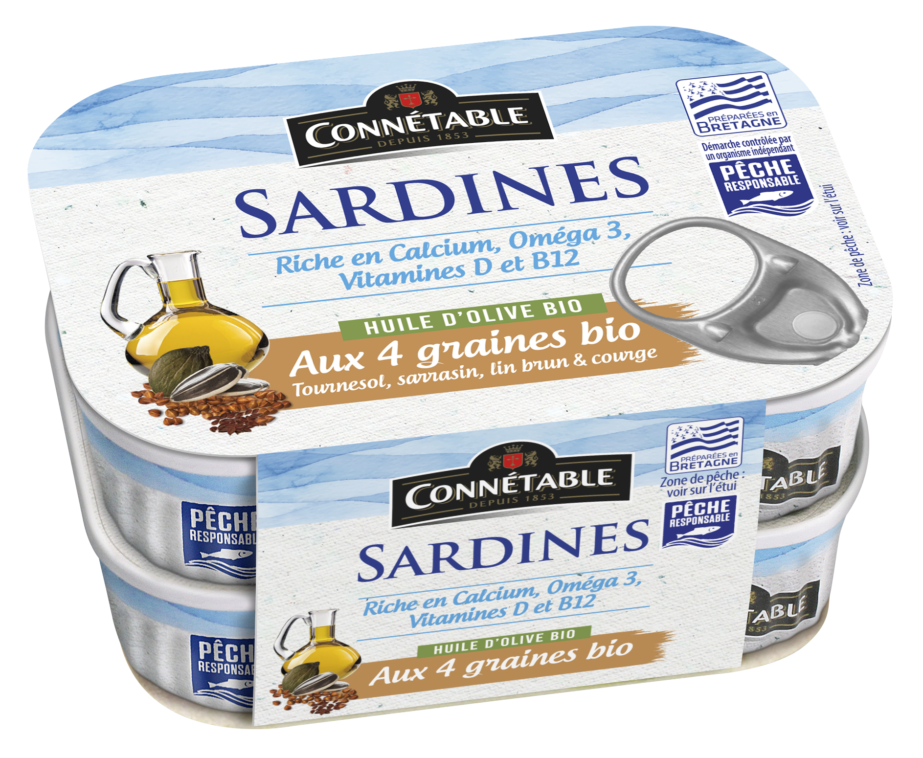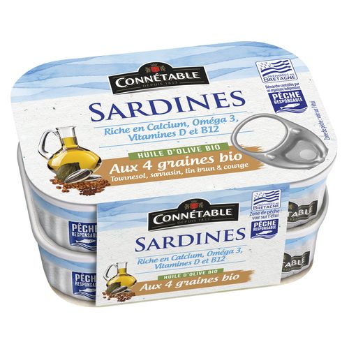 Sardines à l'huile d'olive vierge extra Bio et aux 4 graines Bio