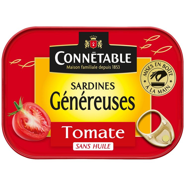 Dans leur boîte rouge et jaune, ces sardines entières aux formes généreuses sont rigoureusement sélectionnées et cuisinées avec une sauce à la tomate sans huile. Une recette au vrai goût de tomate et sans matière grasse ajoutée qui par ses saveurs égayera les assiettes et fera le bonheur de tous les gourmands.
