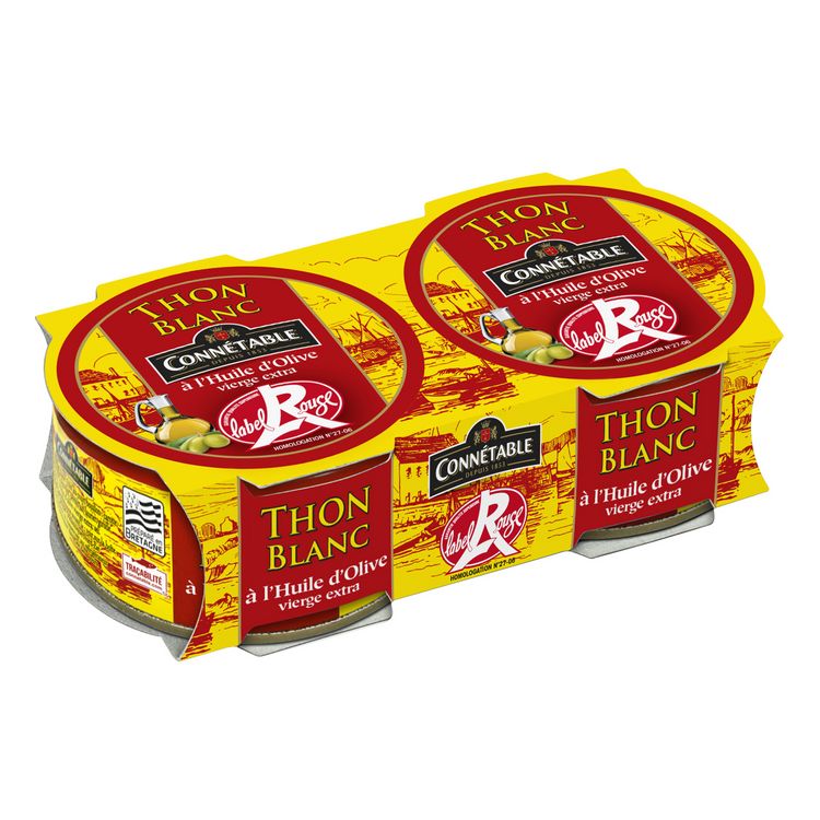 Pêché dans l'Atlantique Nord-Est, puis paré manuellement et emboité frais dans nos ateliers, ce thon blanc mérite bien son Label Rouge ! Nec plus ultra, ce thon blanc, aussi appelé germon, offre la traçabilité jusqu'au bateau (nom indiqué sur chaque boîte). Ce thon nappé d'huile d'olive vierge extra ravira les fins gourmets.