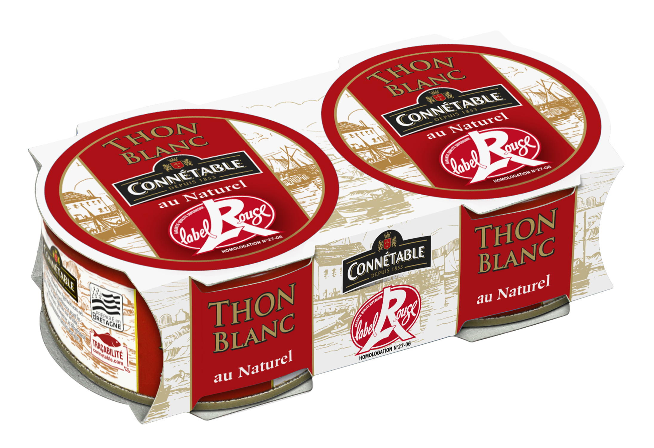 Pêché dans l'Atlantique Nord-Est lors de campagnes très courtes, réfrigéré à bord, puis paré manuellement et emboîté frais à la conserverie, il mérite bien son Label Rouge ! Nec plus ultra du thon, ce thon blanc, encore appelé germon, offre même la traçabilité jusqu'au bateau puisque le nom de ce dernier est indiqué sur la conserve. Savoureuse et pleine de finesse, cette délicate recette fait la fierté de Connétable.