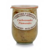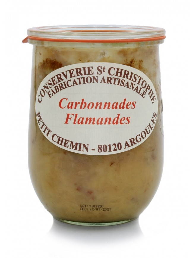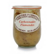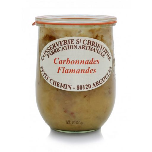 Bœuf 49%, Oignons, Bière de la Brasserie Quentovic, Cassonade, Lardon, Moutarde, Farine de BLÉ (GLUTEN), Sel, Poivre.