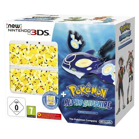 Console New Nintendo 3DS Blanche + Pokémon Saphir Alpha + Coque Pikachu