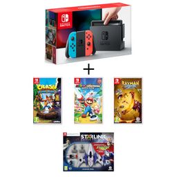 Console Nintendo Switch Joy-Con Néon + Crash Bandicoot N.Sane Trilogy + Starlink Starter Pack + Mario Lapins Crétins Kingdom Battle + Rayman Legends