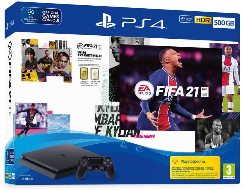Découvrez ce pacl contenant la nouvelle PS4, la console la plus vendue au monde, en version plus fine : un concentré de puissance de jeu en version 500Go avec le jeu Fifa 21 : Gagner ensemble dans EA SPORT FIFA 21, avec le moteur Frostbite™. Que ce soit dans les rues ou dans un stade, FIFA 21 vous offre encore plus de diversité - disputez notamment l’UEFA Ligue des champions et la CONMEBOL Libertadores.