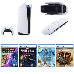 Console PS5 Edition Standard + Ratchet & Clank Rift Apart PS5 + Marvel's Spider-Man : Miles Morales PS5 + Horizon Forbidden West PS5 + Uncharted Legacy of Thieves Collection PS5 + Caméra HD PS5 + Télécommande multimédia PS5