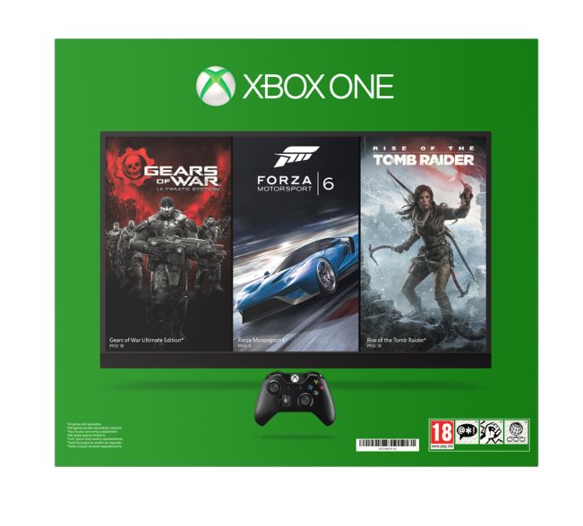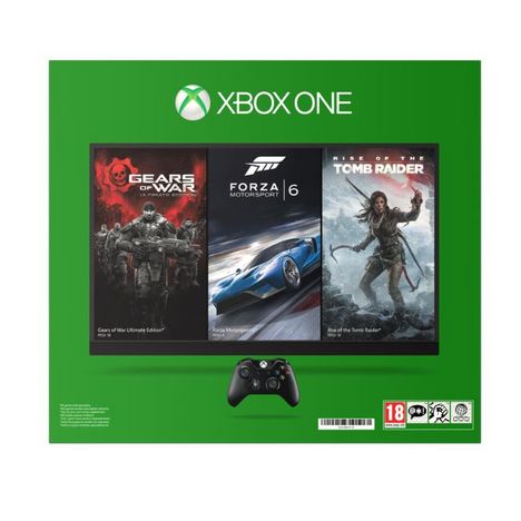1 jeu au choix en téléchargement via un code dans la boite parmi : RARE REPLAY // GEARS OF WAR ULTIMATE EDITION // FORZA MOTORSPORT 6 // RISE OF THE TOMB RAIDER