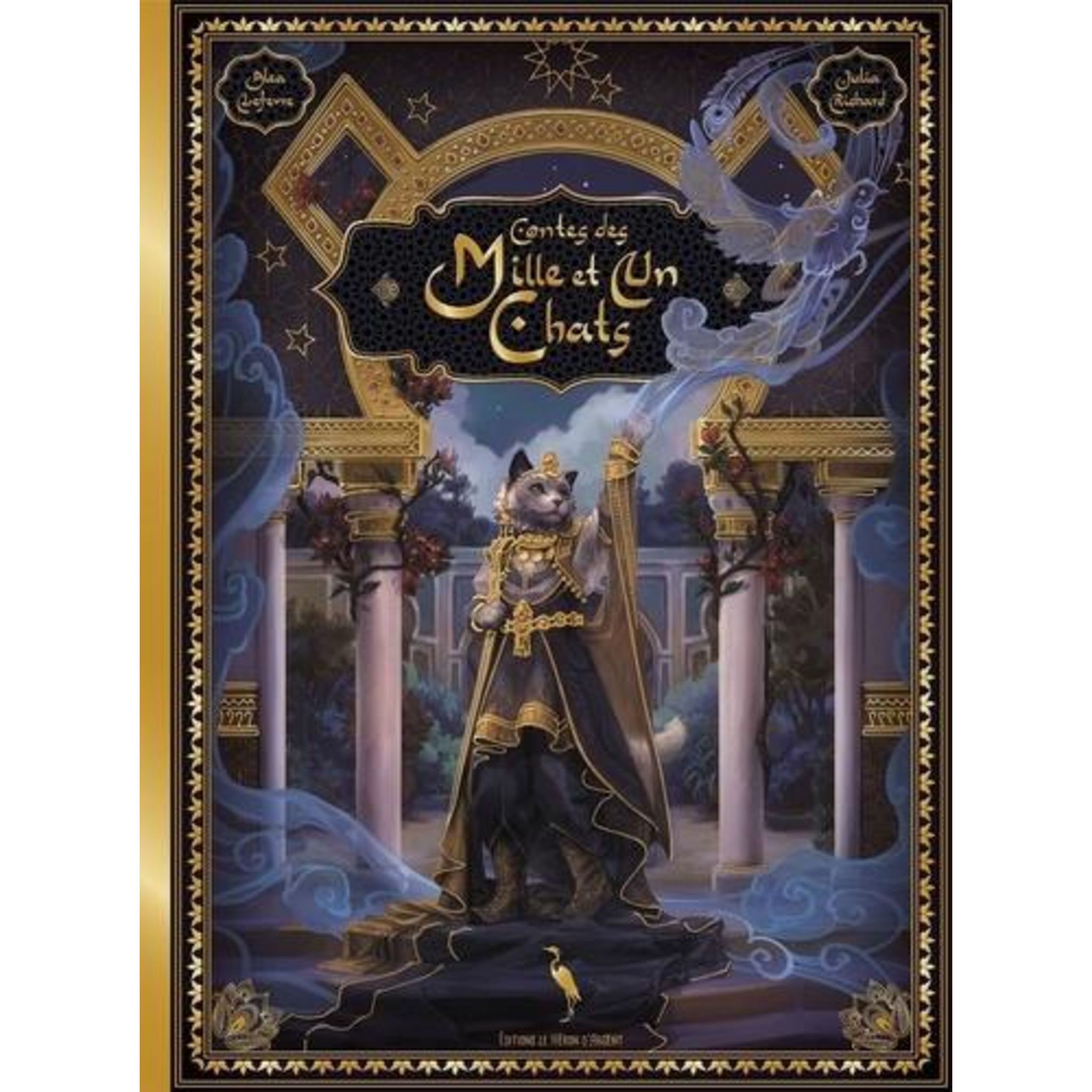 Dans les ruelles chatoyantes d'un Bagdad légendaire, là où le sable doré rencontre les pierres antiques et où les étoiles semblent tout près, des chats mystérieux rôdent,veillant silencieusement sur les contes des Mille et Une Nuits. Entre ces pages emplies de somptueux palais de marbre et de souks parfumés, les félins deviennent les acteurs des plus célèbres légendes du monde arabe. Aux côtés du sultan Shahryar et de la sage Shehérazade, laissez-voue envoûter par le destin tragique du prince Behezad. Suivez les escapades du calife Hârûn ar-Rashid dans les méandres de sa cité et tremblez devant l'ange de la Mort. Voyagez aux côtés de Sindbad le Marin et plongez dans un monde où le surnaturel chatoie sur les dunes. En féline compagnie, découvrez un Siècle d'or où magie, sagesse et décadence dansent à l'unisson. Frottez la lampe d'Aladdin... et laissez-vous emporter par la souffle enchanteur de l'Orient.