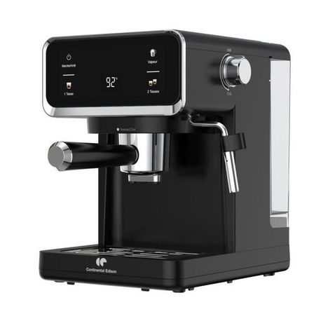 Découvrez la machine a expresso CONTINENTAL EDISON CEME19B, offrant une pression de 19 bars pour un café de qualité. Son affichage digital vous permet de contrôler la température et le temps d'écoulement. Avec 2 porte-filtres et une capacité de réservoir de 1 L, préparez facilement un café simple ou